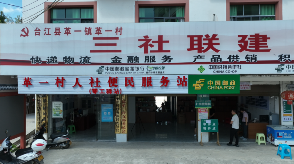 革一镇革一村利用村级合作社,通过“快递+金融服务网点”,积极打造“寨富驿点一站式”综合服务平台,打通农村金融服务、农村物流的“最后一公里”。