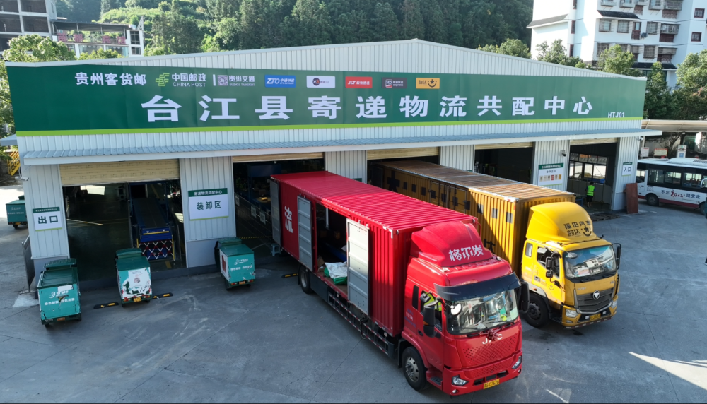 “‘客货邮’融合发展共配中心,建成了7个乡镇级的集散中心、63个村级综合便民服务站。运输以邮政自运车辆为主、客车为辅,与客车站达成了5条客车代运线路。每天送货4500件左右,每年可以帮助老百姓节省取件交通费用1000万元以上。”中国邮政台江县分公司副总经理杨汉楷说道。