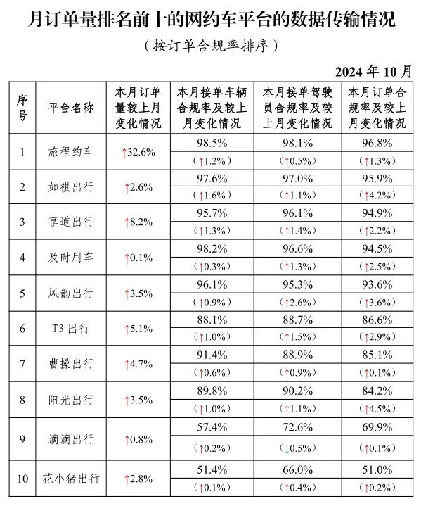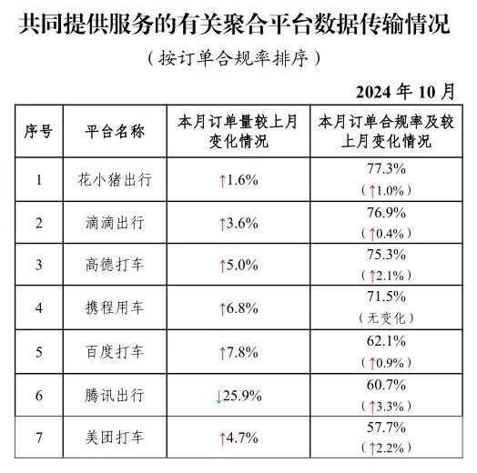 其中,面向乘客、与网约车平台公司共同提供服务的平台(俗称“聚合平台”)完成2.46亿单,环比下降0.5%。按订单合规率由高到低的分别是花小猪出行、滴滴出行、高德打车、携程用车、百度打车、腾讯出行、美团打车。